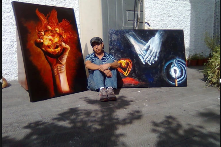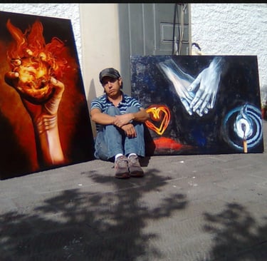 Desde la temprana edad de 8 años, mi abuela materna Maria Teresa Avalos de Gil Puso un pincel en mis manos pequeñitas y se encontraron con los oleos y me enseño a pintar unas mariposas sobre un lienzo de 1.50 x 1.50, yo lo veía gigantesco en aquel tiempo, esa pieza mi primer obra se la regale a mi mama el 10 de mayo y al ver la felicidad que le causo, segui haciendolo y con el paso del tiempo me interese por otras técnicas pictóricas, marcando el inicio de un compromiso eterno con la expresión artística. Mis raíces se hundieron profundamente en la tradición de la pintura en acrílico y óleo, forjando una relación que perduraría a lo largo de los años, día tras día.